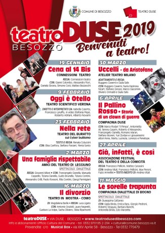 Sabato 19 gennaio 2019, ore 21, Teatro Duse di Besozzo!