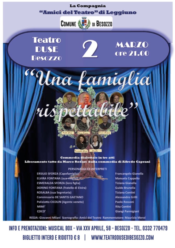 Prima delle due serate dedicate agli spettacoli in dialetto locale, nel segno della simpatia, sarà ospite sul palco la compagnia Amici del Teatro di Leggiuno, con la nuova commedia “una famiglia rispettabile”