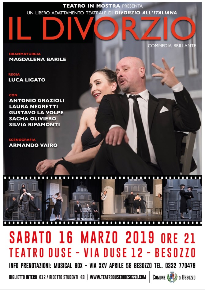 Lo spettacolo vuole essere un omaggio teatrale al cinema italiano e alla commedia tra le commedie, Divorzio all’italiana di Pietro Germi; un capolavoro di comicità conosciuto in tutto il mondo e grazie al quale l’Italia vinse il Festival di Cannes nel 1962 come miglior commedia e ottenne l’Oscar per la miglior sceneggiatura originale. Un ironico e godibilissimo ritratto della mentalità e delle pulsioni di una certa Sicilia di provincia dell’inizio degli anni ’60 che prende di mira, con graffiate ironia e con un sarcasmo a volte feroce, due situazioni di arretratezza legislativa di un’Italia in pieno boom economico: la mancanza di una legge sul divorzio, che arriverà solo nel 1970, e soprattutto l’anacronistico articolo 587 del codice penale che regolava il delitto d’onore, che verrà abolito soltanto venti anni dopo.
